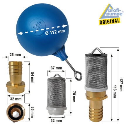 Ansaugset: 1″ Zoll -Rückschlagventil mit Vorfilter und 25mm Schlauchtülle