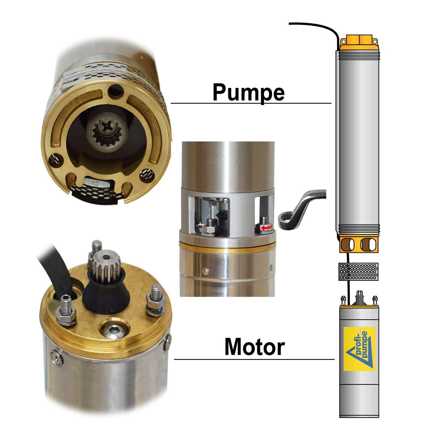 - Steckerfertig! Kondensator in der Tiefbrunnenpumpe integriert (ein Vorteil, da die Verdrahtung durch Elektriker entfällt))
