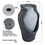 Der Wasserbrunnen AMPHORE VENUS ist für den Innen- und Außenbereich geeignet. Betrieben wird der stilvolle Garten- und Zimmerbrunnen mit einem 230/12-Volt Netzadapter. Mit der wirklichkeitsgetreuen Steindekoration sorgt der Indoor- und Outdoor-Brunnen für eine naturnahe Atmosphäre und Entspannung. Das Lebenselixier Wasser belebt Wohnzimmer, Esszimmer, Flure und Eingangsbereiche, Wintergärten oder Balkone, Terrassen und Gärten im privaten wie gewerblichen Umfeld.