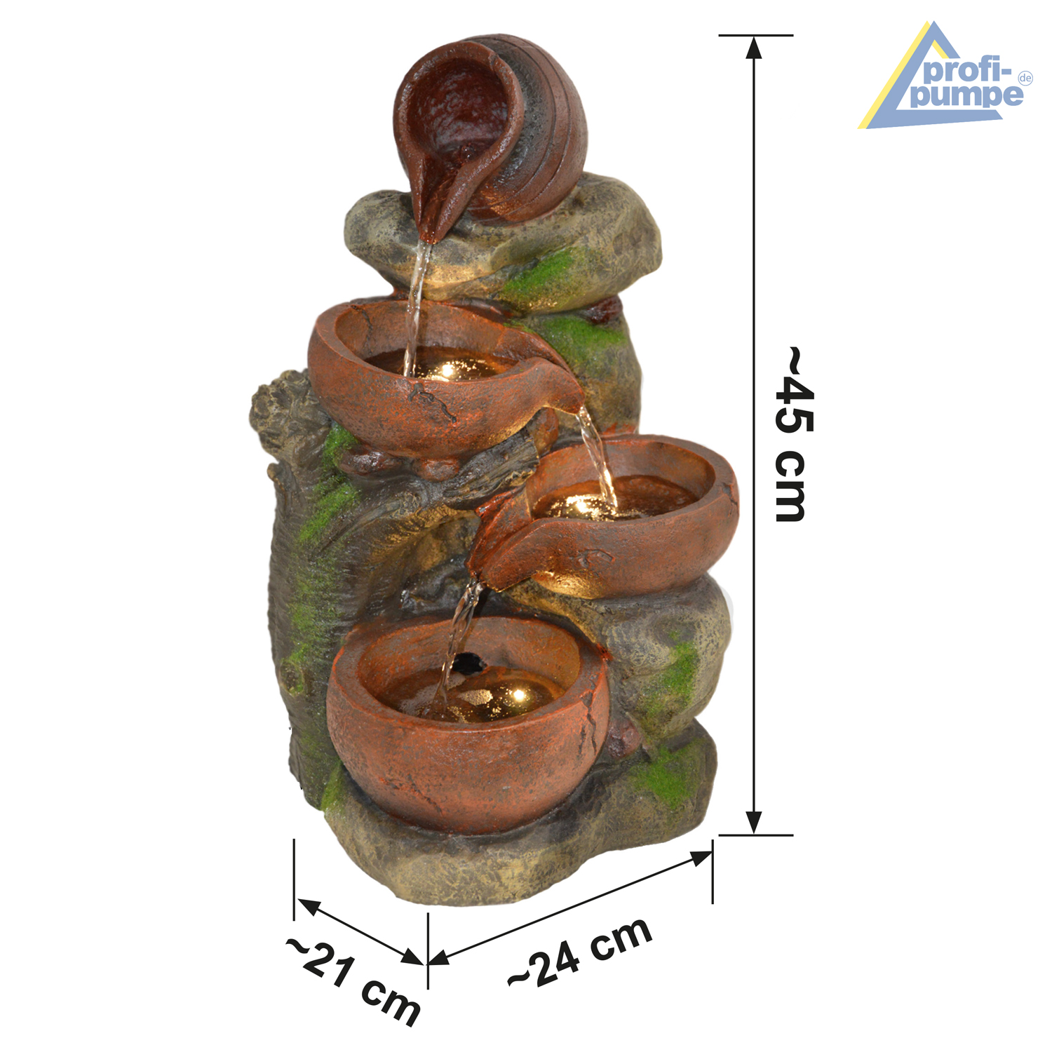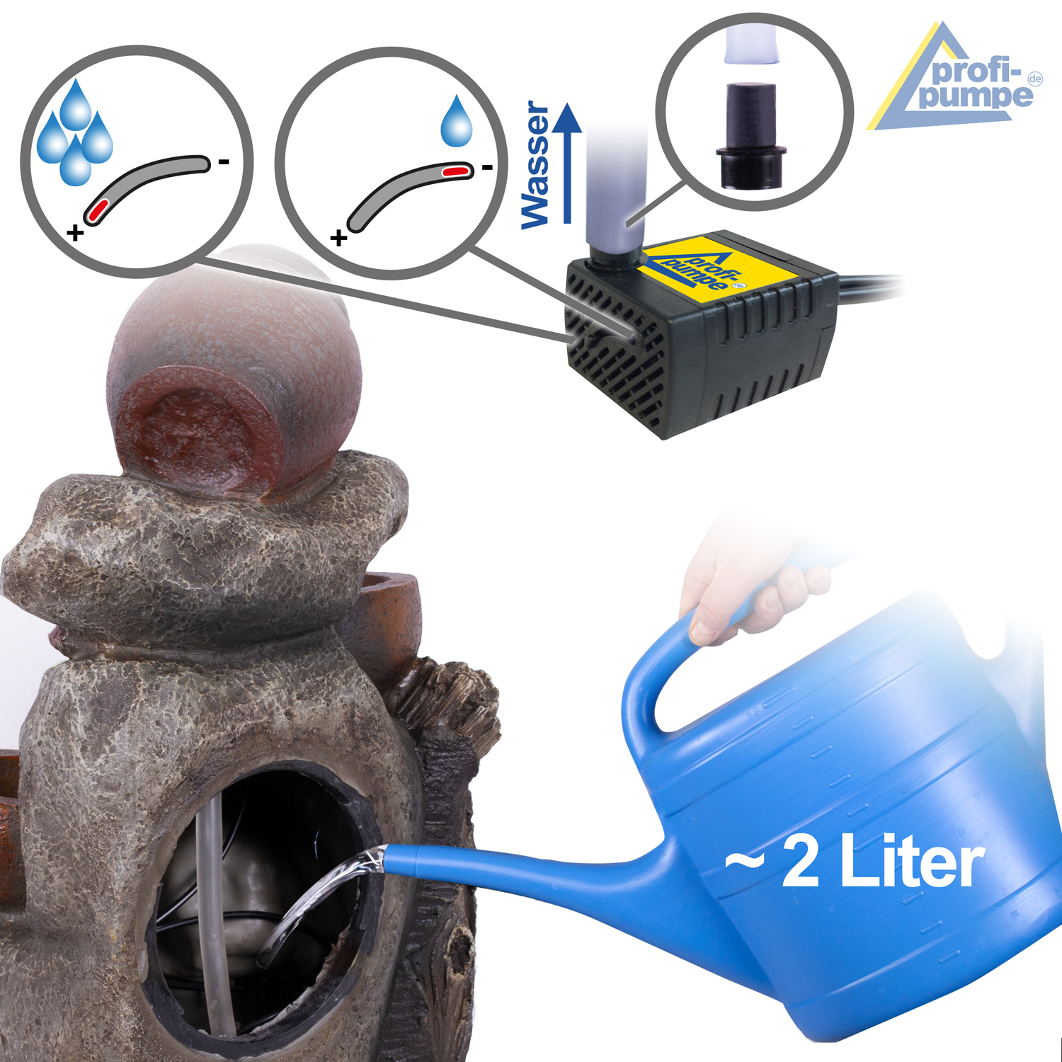 - Mit 230V/12V-Anschluss, 2 Watt Pumpe, LED-Lichter in warmem Weiß