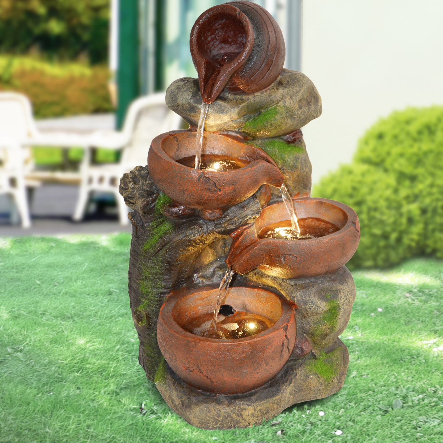 230V – Gartenbrunnen “4-TONKRÜGE IM BAUMFELS” mit LED-Licht