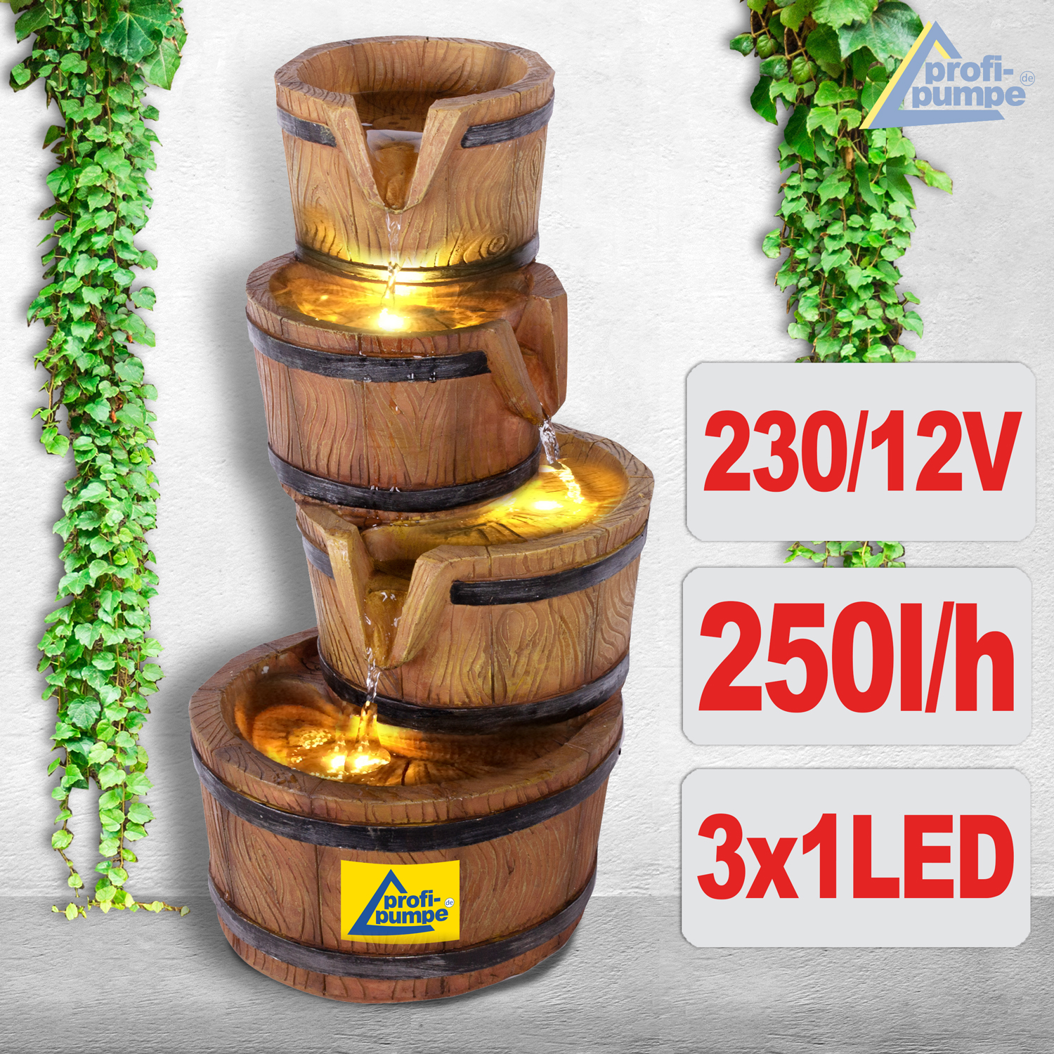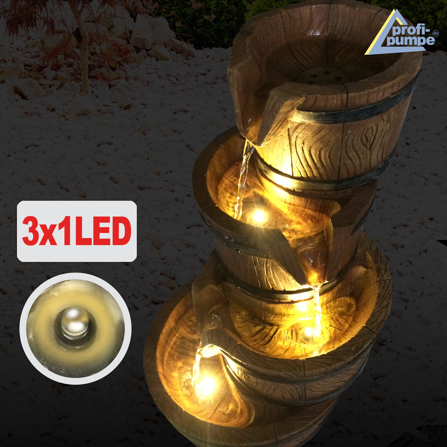 Gartenbrunnen “HOLZ-KRUG” mit 3 austauschbaren LED-Lichtern (3*1)