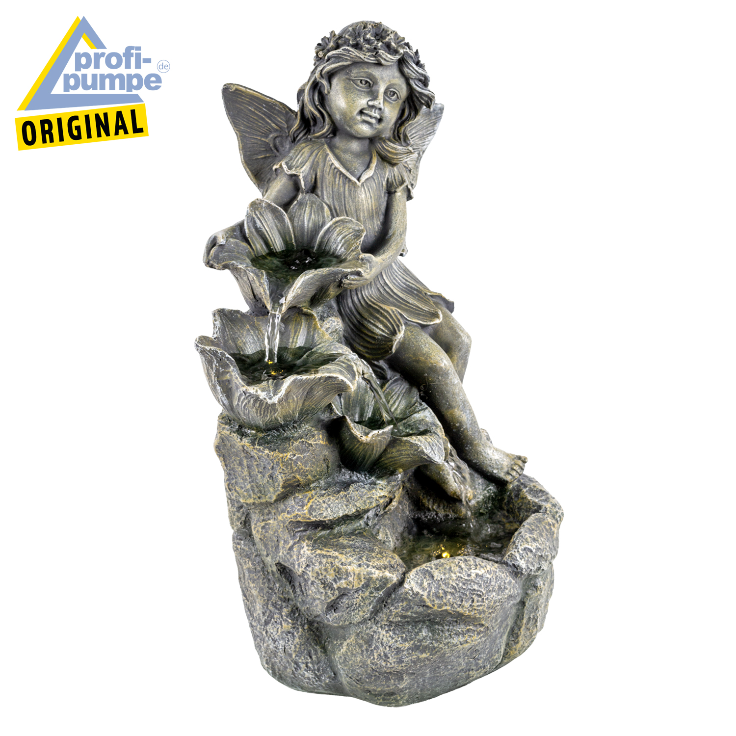 230V – Gartenbrunnen & Wasserspiel “BLÜTEN-FEE” mit LED-Licht