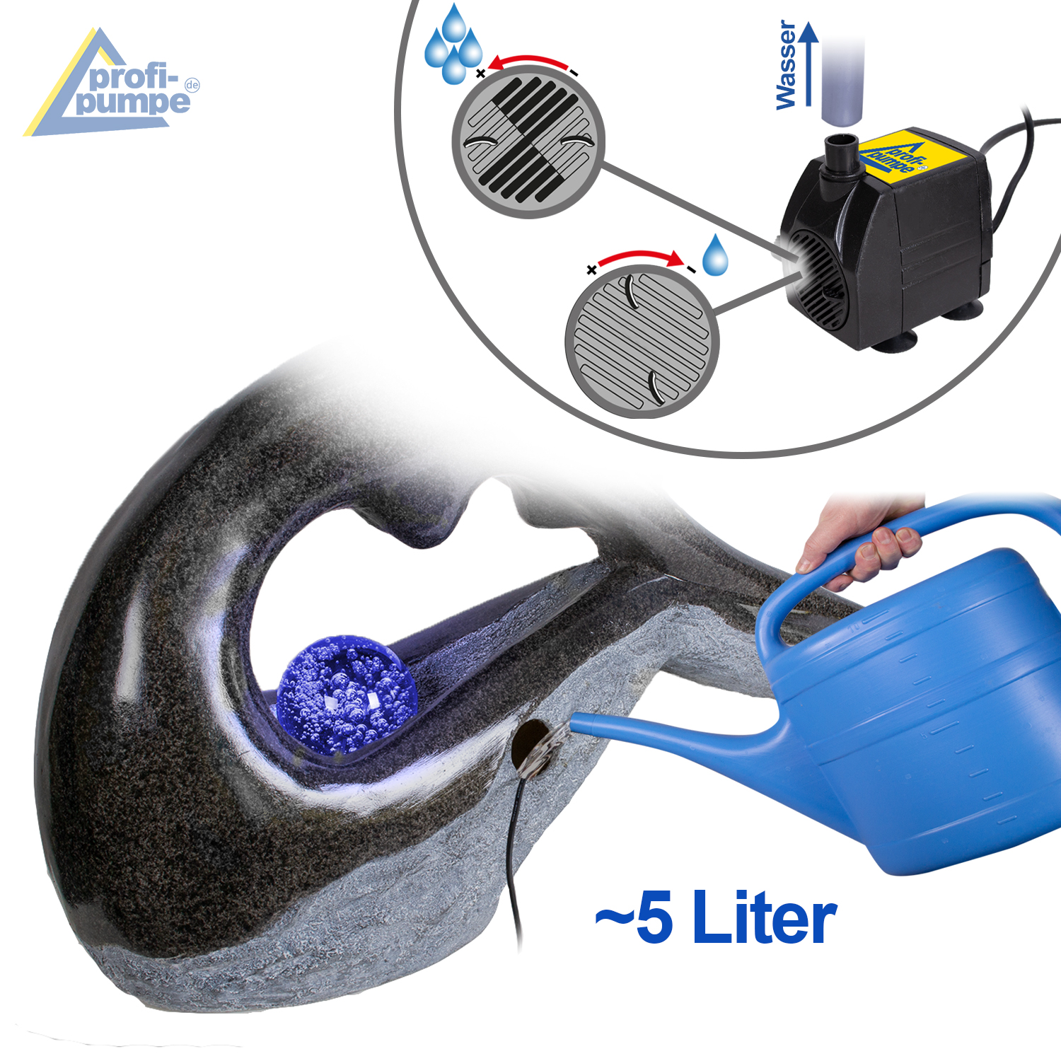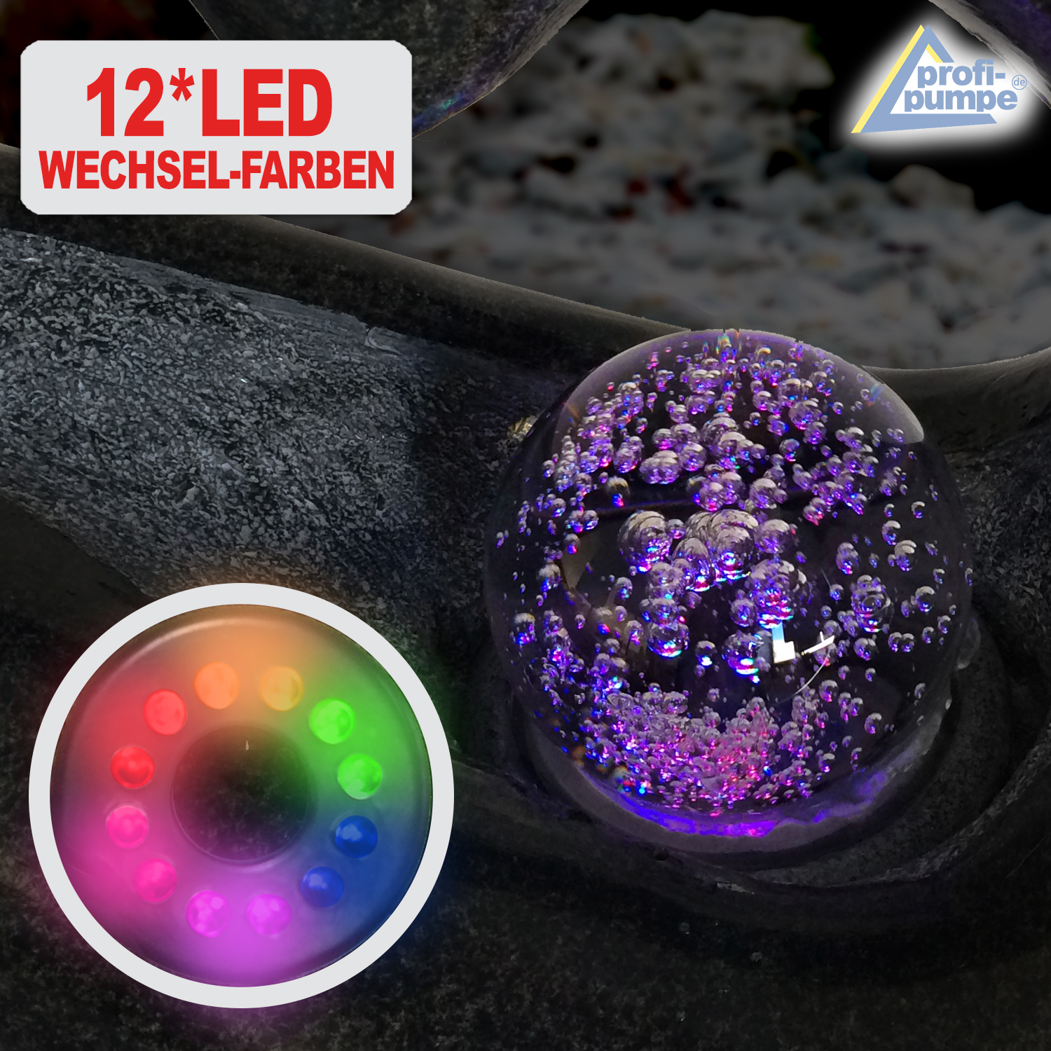 Der Garten- und Zimmerbrunnen ist sowohl bei Tag als auch bei Nacht der perfekte Hingucker. Die mitgelieferte LED-Beleuchtung sorgt für die perfekte Illumination. Die LED-Lichter des austauschbaren LED-Rings erstrahlen in unterschiedlichen Farben.