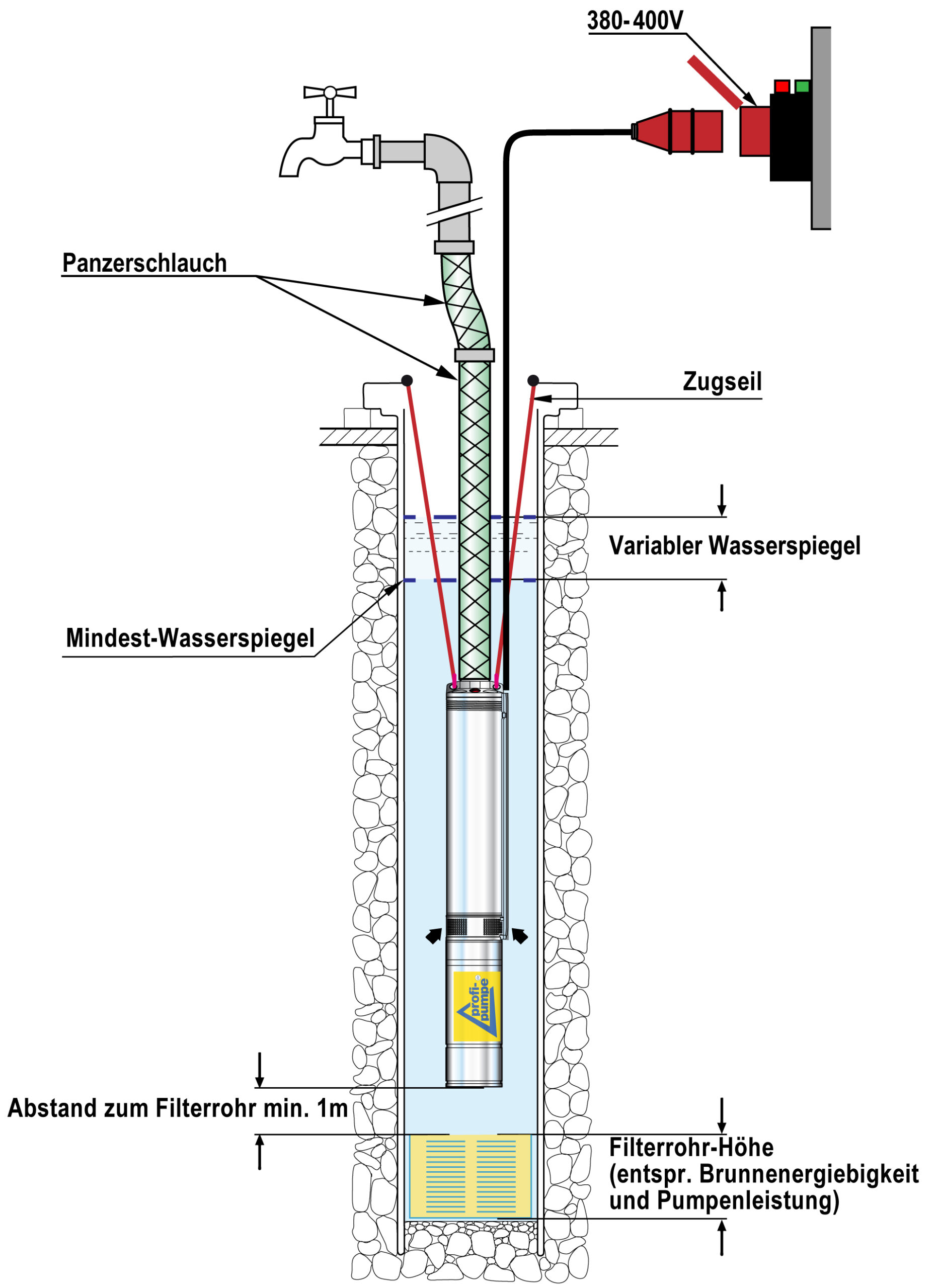 - leistungsstarke 5-Zoll-Brunnenpumpe mit 3000 Watt Leistung