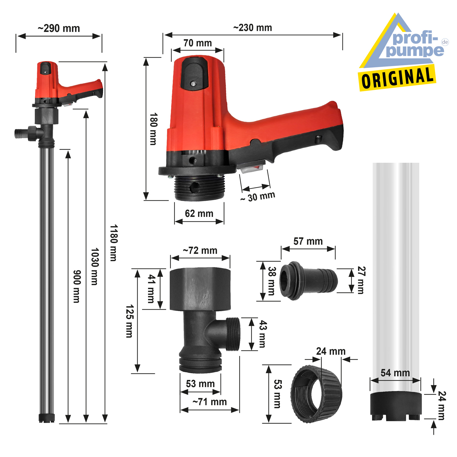 Die 24-Volt-Fasspumpe ist die ideale Umfüllpumpe und eignet sich hervorragend zum Be- und Umfüllen von Diesel und Heizöl aus Tanks und Fässern. Mit unserer elektrischen Fass-Pumpe kein Problem. Das optimale Werkzeug für jeden Fuhrpark, KFZ-Werkstätten, oder in der Landwirtschaft, bei Autoverwertern usw! Hiermit befüllen Sie mühelos jegliche Art von Fahrzeugen und Maschinen.