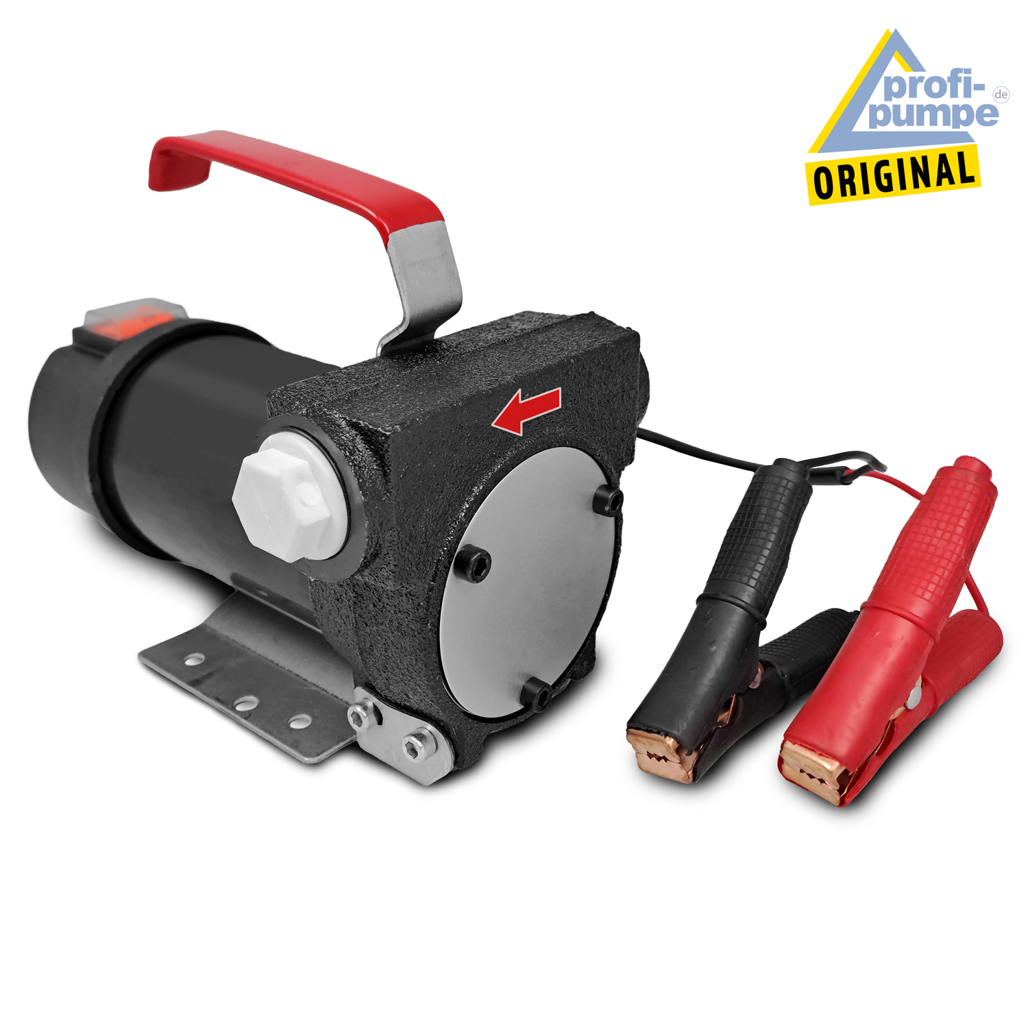Dieselpumpe mit 2 Tüllen und mit Klemmen zum Anschluss an 12-Volt-Batterie