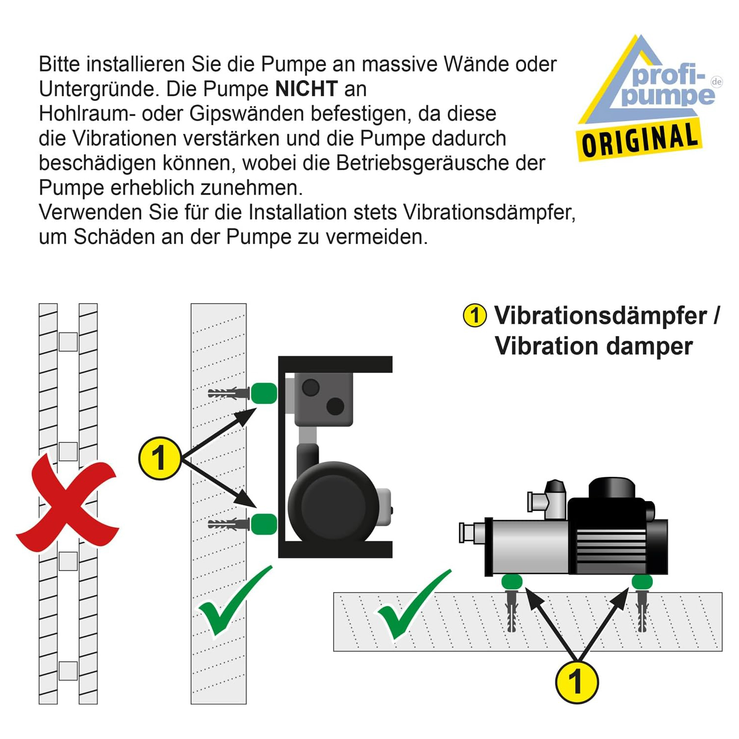 Alle Pumpen sind EINZELSTÜCK-geprüft auf Ihre Funktion. Daher können Reste der Prüfflüssigkeit in der Pumpe / Verpackung vorhanden sein.