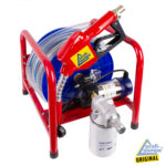 EASY Diesel Tank Station – elektrische 230-Volt Diesel-Pumpe mit Druckschlauch-Trommel, Automatik-Zapf-Pistole und Rückschlagventil mit Vorfilter. Die saugstarke Diesel-Tank-Station kann einfach und überall mobil eingesetzt werden. So macht das Umtanken Spaß und bleibt eine saubere Sache! Die Pumpe ist betriebsfertig mit der Schlauchtrommel verbunden. Der Filterkorb, der Vorfilter und die Zapfpistole werden mit dem mitgelieferten Zubehör sicher miteinander angeschlossen, so dass eine komplette Diesel-Zapfstelle entsteht.