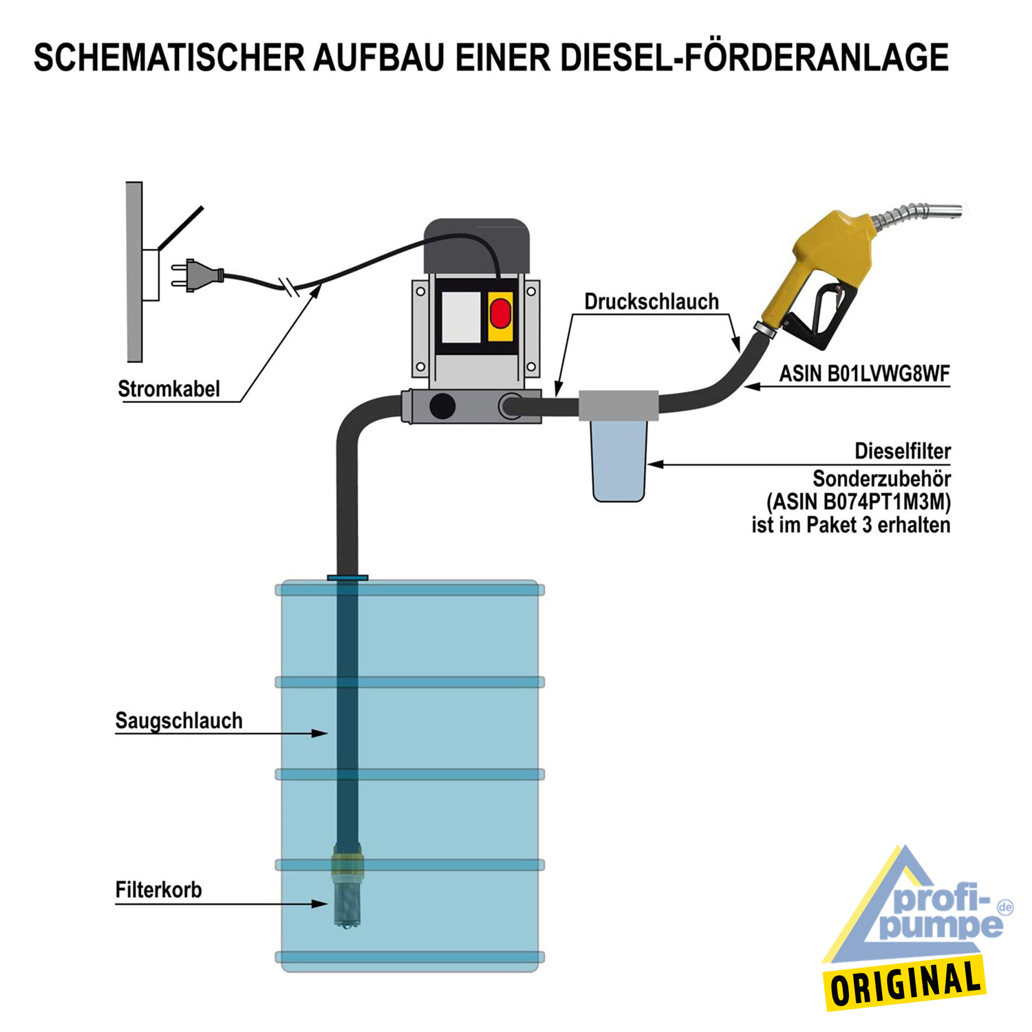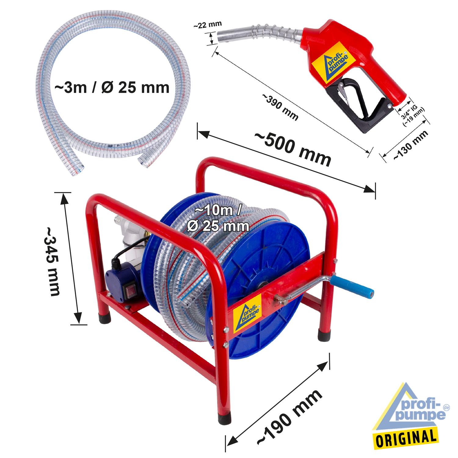 Diesel Tank Station: Set mit Pumpe, Druckschlauch-Trommel, Automatik-Zapf-Pistole, Vorfilter und Zubehör