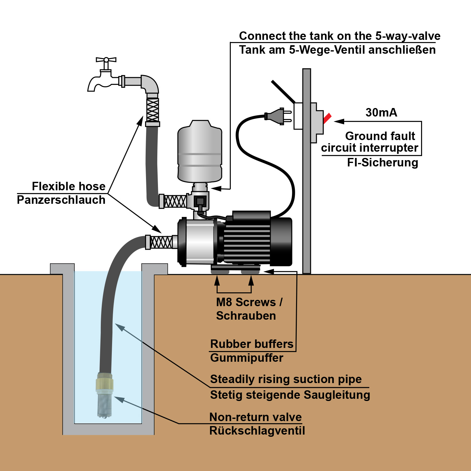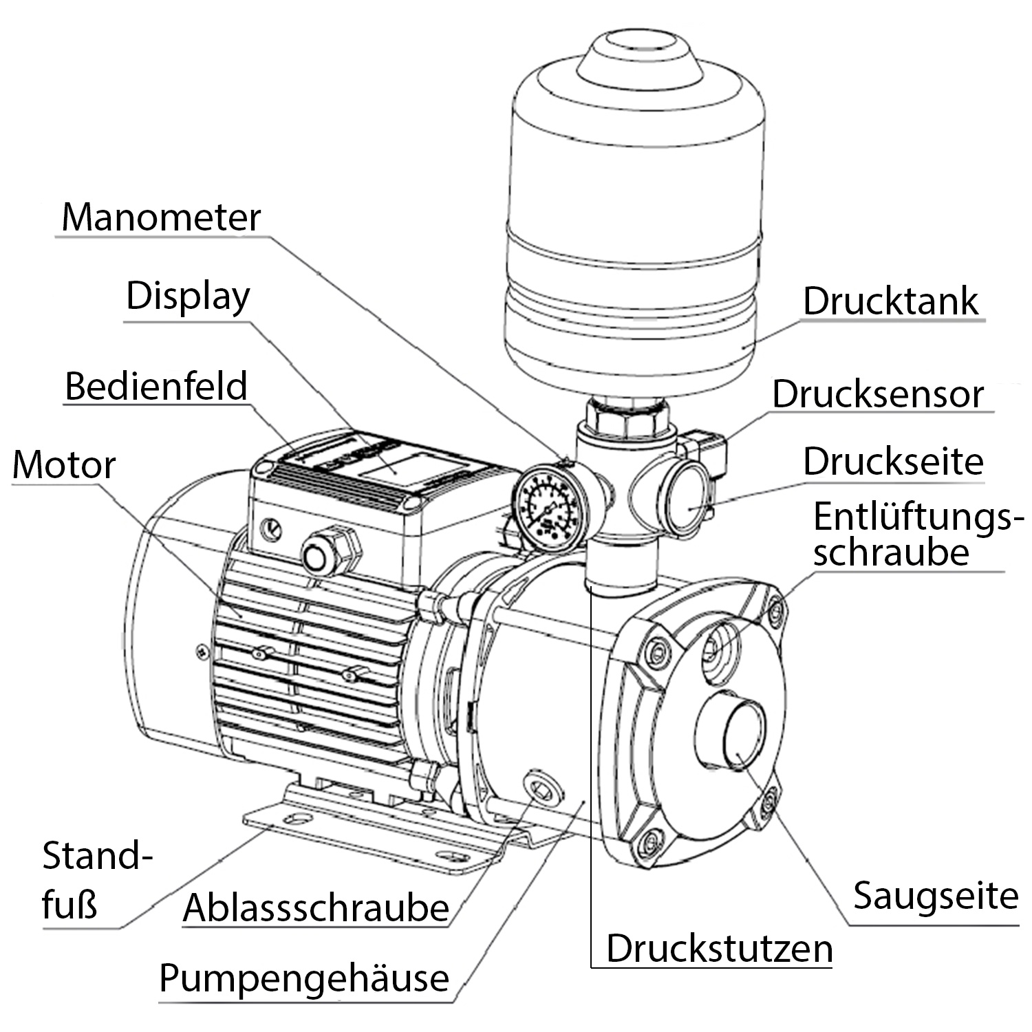 - Hochwertiges, mehrstufiges, smartes Hauswasserwerk mit Permanent-Magnetkern-Motor-Pumpe