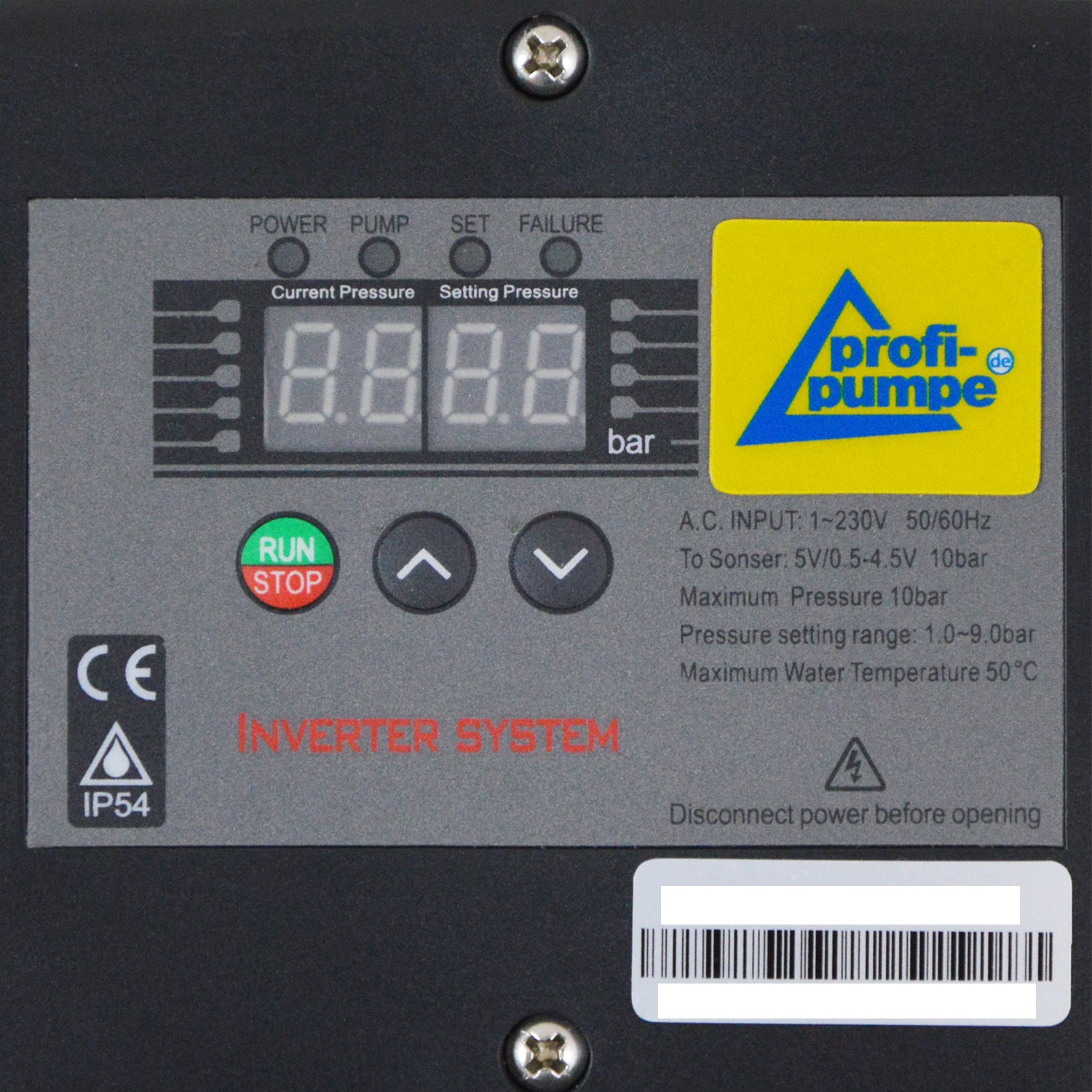 Die Inverter-Pumpensteuerung schaltet die Pumpe sanft ein und passt die Drehzahl der Pumpe dem eingestellten Druck an.