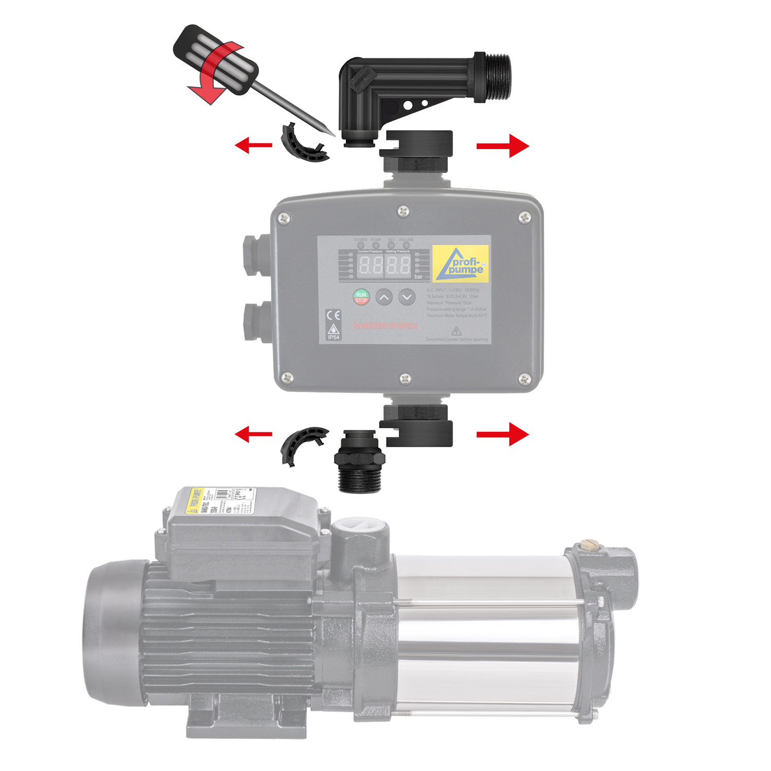 - Kunststoffanschlüsse (polypropylen) mit garantierter Dichtheit bis zu 10 bar