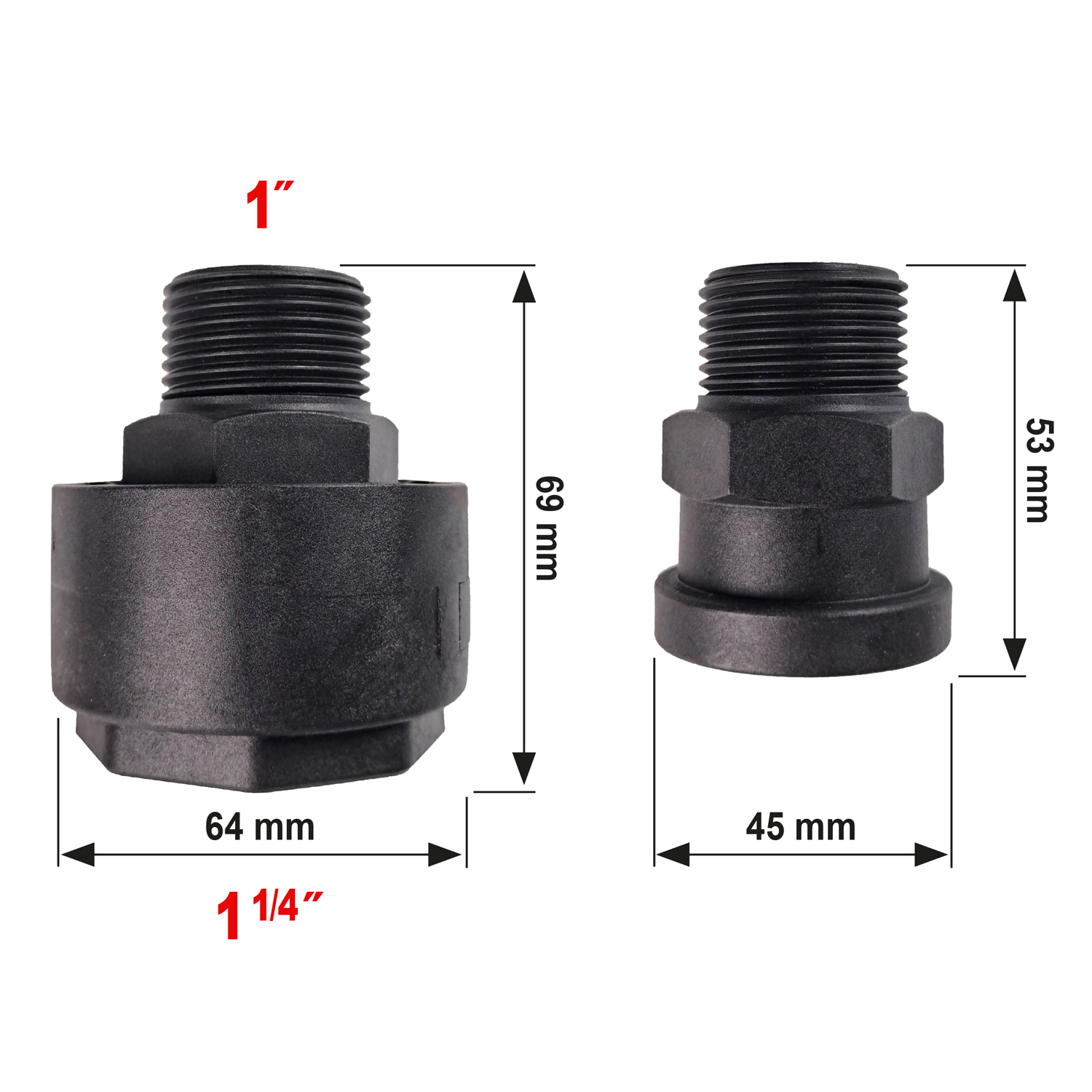 Kunststoff-Verbindungsstück 1″ AG x 1 1/4″ IG mit Überwurfmutter und Dichtung