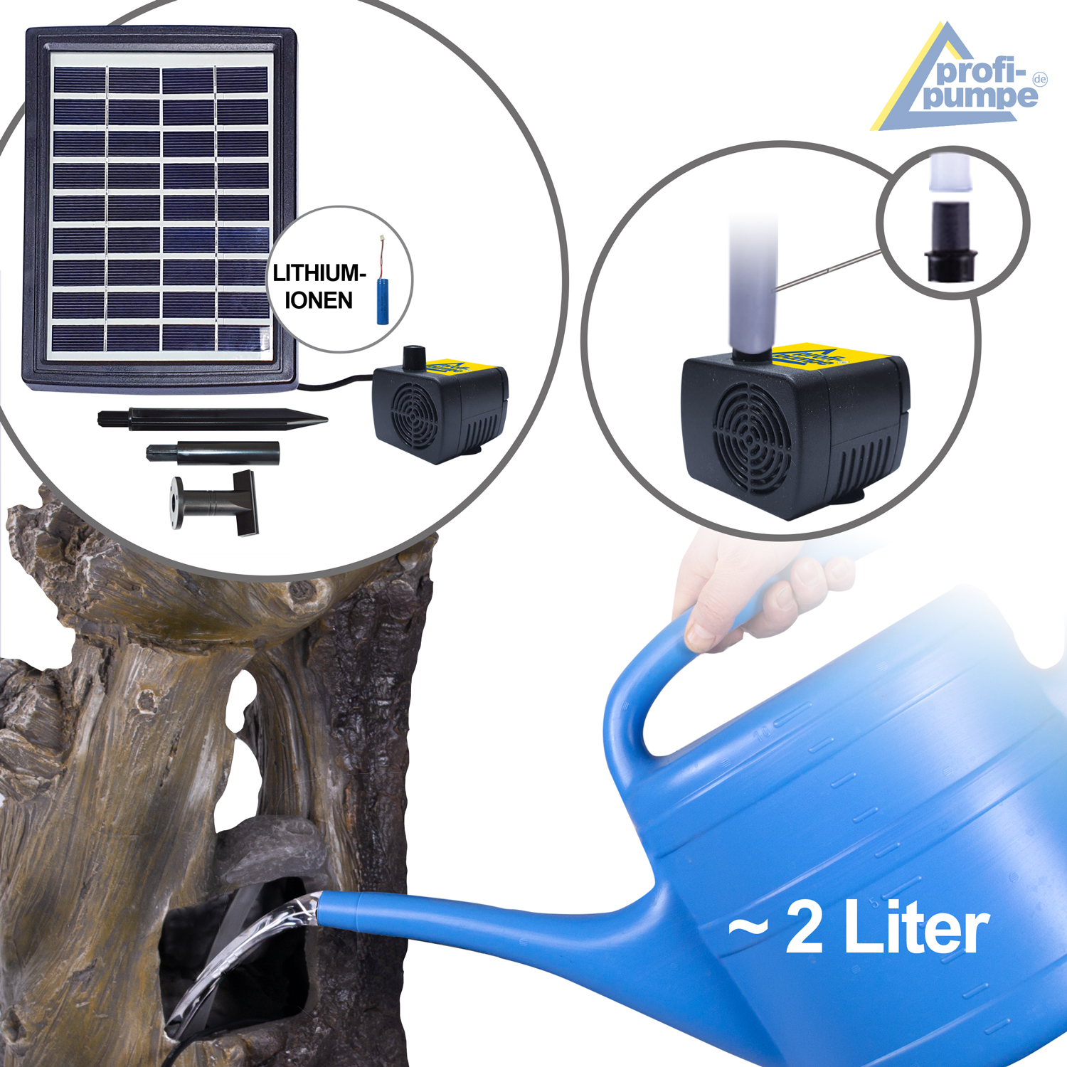 Solarbetriebener Garten-Brunnen mit Li-Ion Akku und LED-Lichter