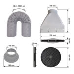 Die Airbrush Absauganlage kommt mit der Spritzkabine, Filter, dem Abluftschlauch, einem 7,5-Zoll-Drehtisch, 8 Krokodilklemmen, 8 roten Clips sowie Netzstecker.