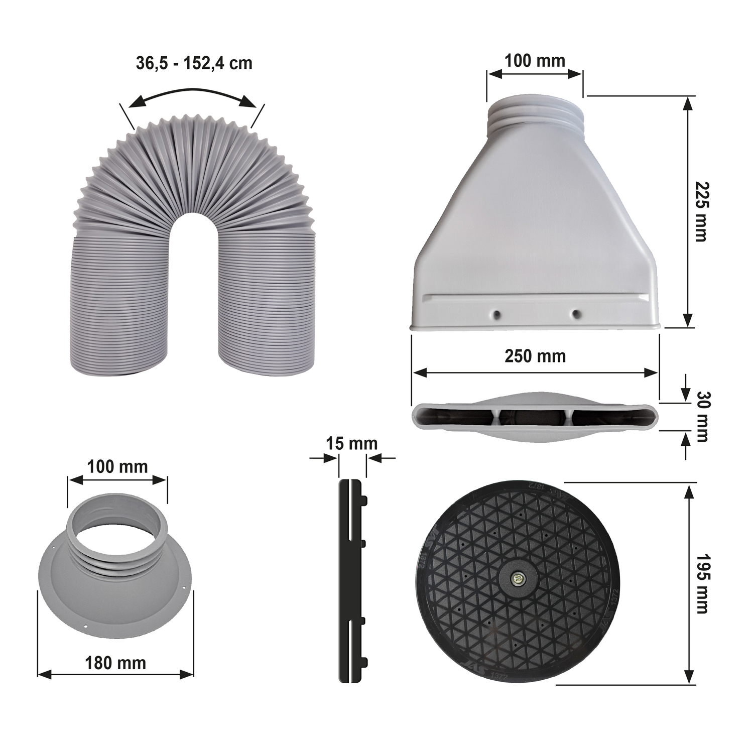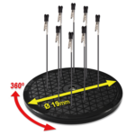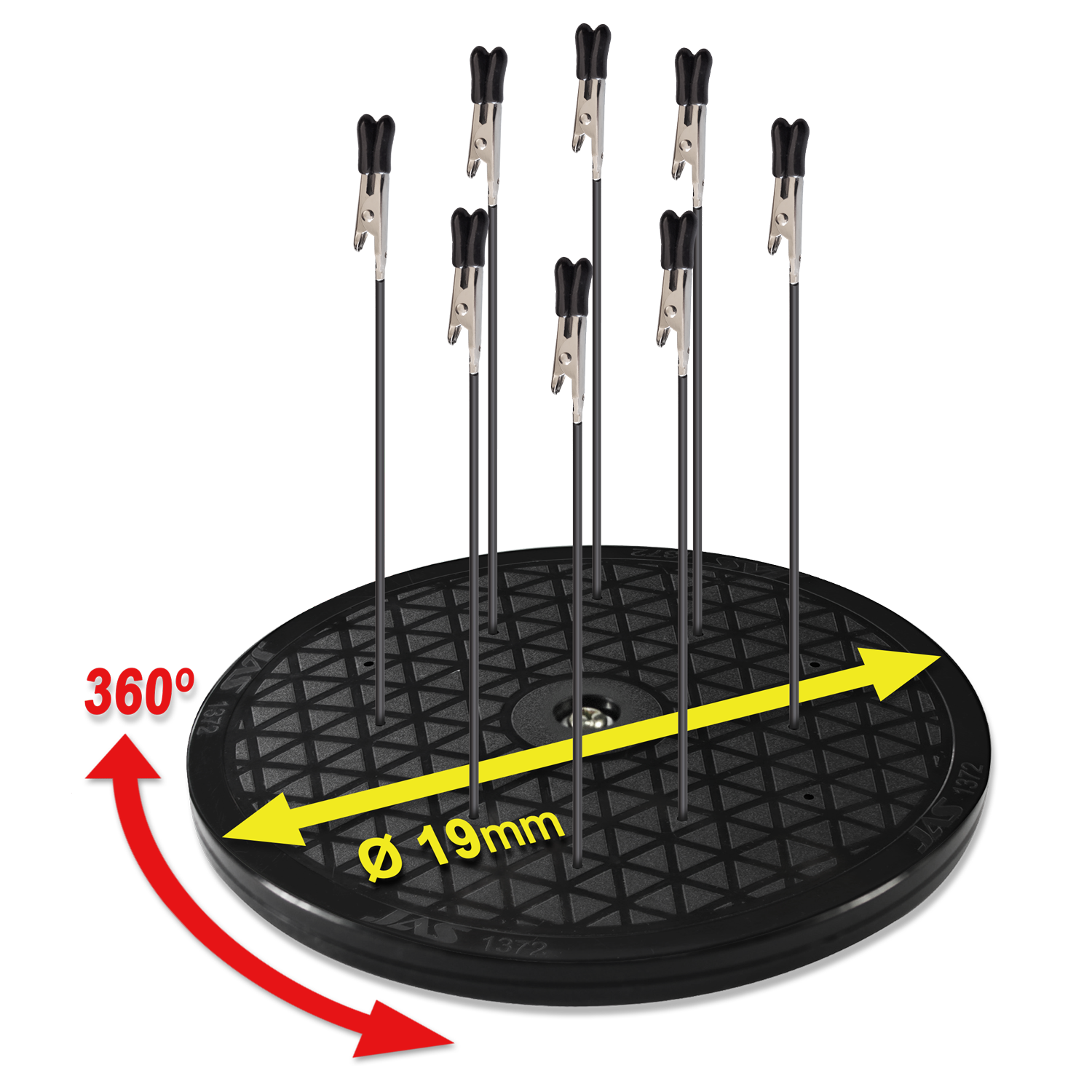 Der flexible Entlüftungsschlauch lässt sich bis zu 5ft / 60″ / 1,52m ausdehnen. Der frei rotierbare Drehteller ermöglicht ein leichtes Ansprühen des Objekts von allen Seiten und besitzt 12 kleine Löcher zum Befestigen der mitgelieferten Klemmen.