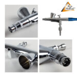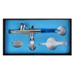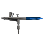 Die Airbrush-Pistole “Single-Action-Gun 207 D 0,3” ist ein Zweistoff-Zerstäuber, der nach dem Prinzip einer Strahlpumpe arbeitet, wobei Druckluft als Treibmittel verwendet wird. In Abhängigkeit von der Stärke des Luftstroms und der Menge der Farbe, kann man mit einer Airbushpistole feinste Linien aber auch große Flächen malen. Man kann Farbe deckend aufsprühen aber auch einen transparenten Farbfilm airbrushen.