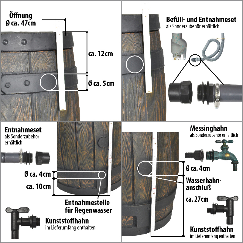 Regentonne Eichenfass 240L zzgl. Befüll- und Entnahme-Set-Auswahl