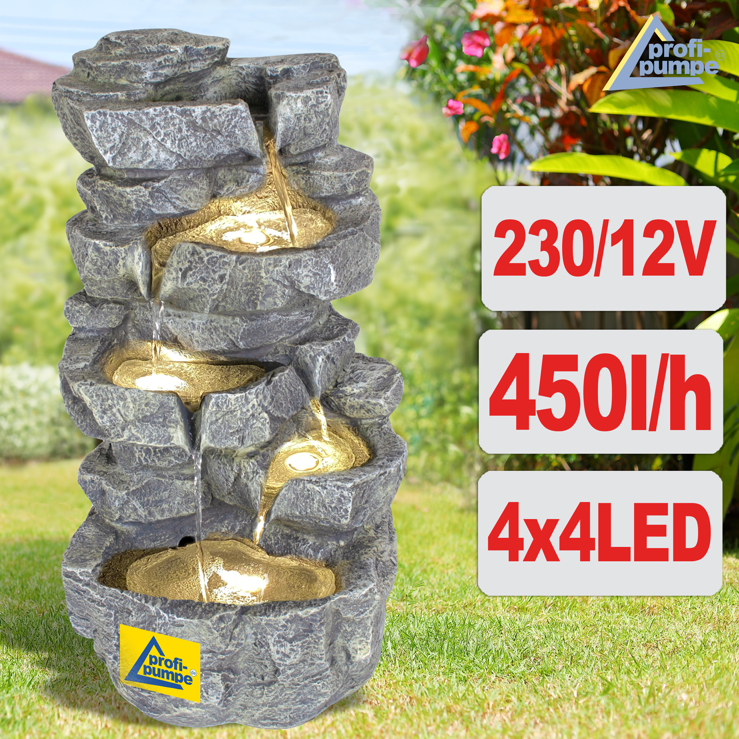 Gartenbrunnen MÄRCHEN-FELS mit LED-Ring (4×4) und 230/12V-Netzadapter. Für den Innen- und Außenbereich.