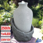 Die AMPHORE KORFU ist für den Innen- und Außenbereich geeignet. Betrieben wird der stilvolle Garten- und Zimmerbrunnen mit einem 230/12-Volt Netzadapter. Mit der wirklichkeitsgetreuen Steindekoration sorgt der Indoor- und Outdoor-Brunnen für eine naturnahe Atmosphäre und Entspannung. Das Lebenselixier Wasser belebt Wohnzimmer, Esszimmer, Flure und Eingangsbereiche, Wintergärten oder Balkone, Terrassen und Gärten im privaten wie gewerblichen Umfeld.