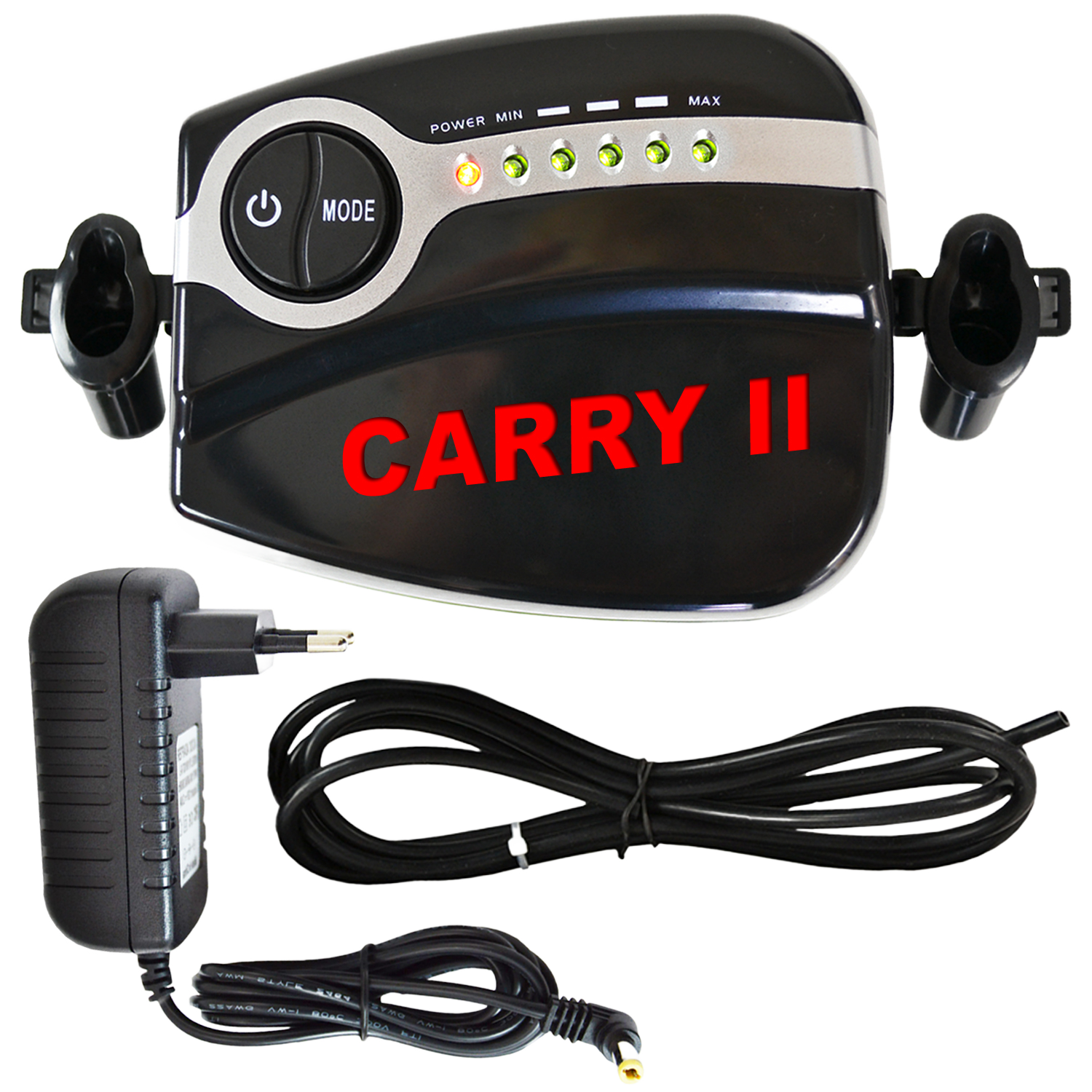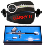 AIRBRUSH KOMPRESSOR SET: Mini Airbrush Kompressor CARRY II mit 5-POWER-STUFEN-Kompressor-Leistung (max. Druck 1,7 bar, max. Luftabgabemenge: 16 l/min, Motorleistung: 12V10W) und der Airbrush-Pistole “Double-Action-Gun 130 D 0,3”