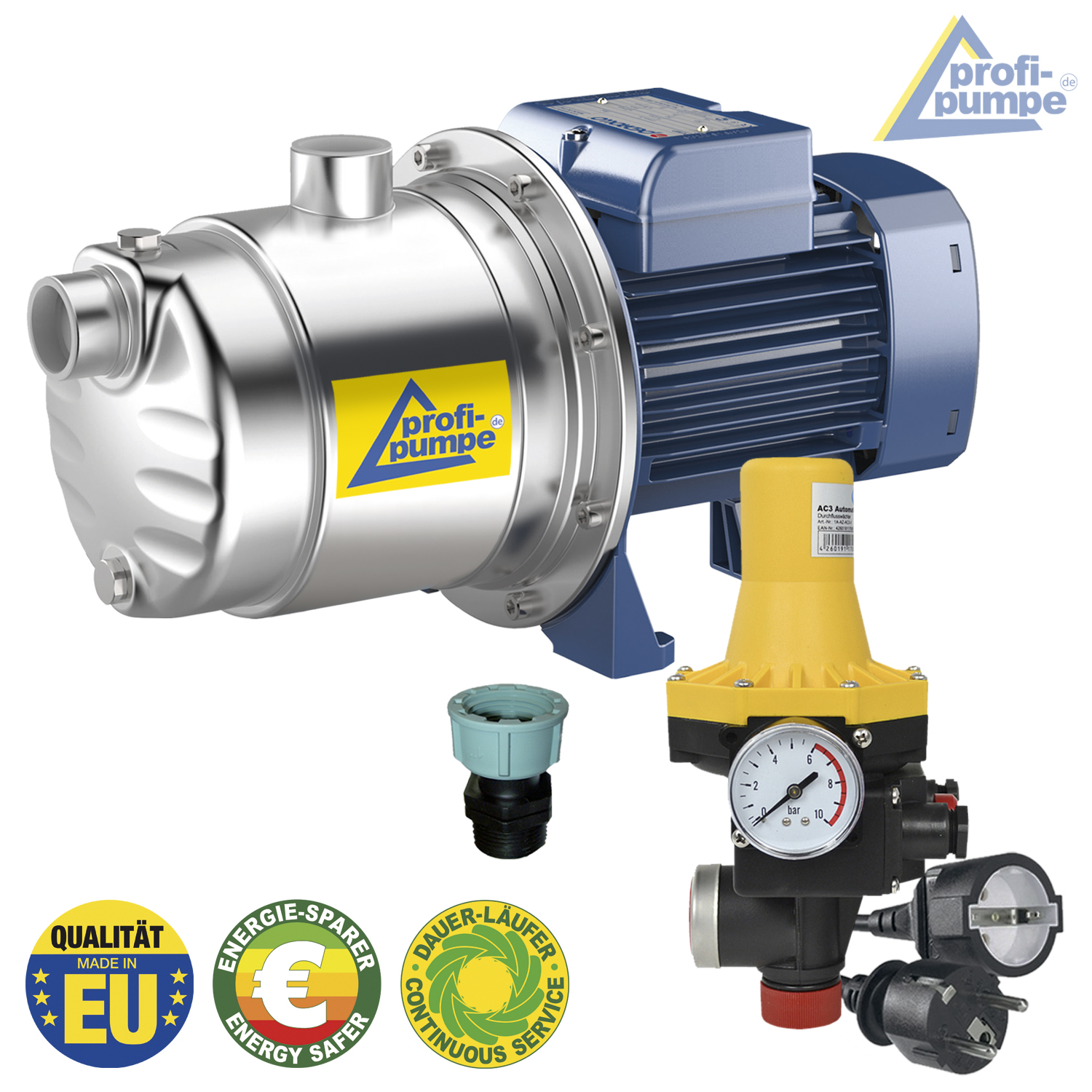 Sowohl die mehrstufige Kreiselpumpe als auch der Druckschalter stammen aus hochwertiger europäischer Fertigung.