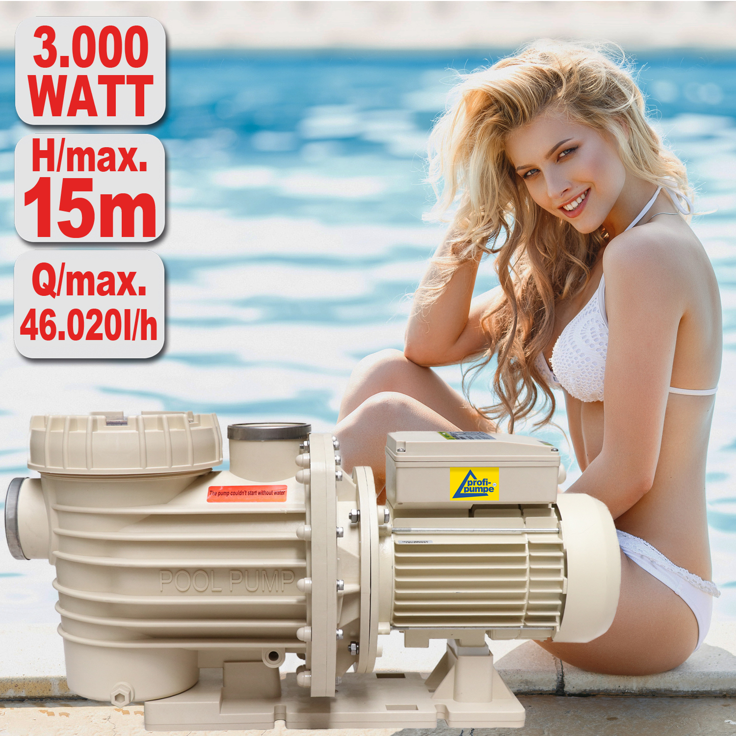 Die POOL-STAR 3000 erbringt eine maximale Fördermenge von 46.020l/h, der maximale Druck beträgt 1,5 bar und die maximale Förderhöhe 15m. Bitte beachten Sie, dass bei steigender Förderhöhe die Fördermenge entsprechend sinkt.