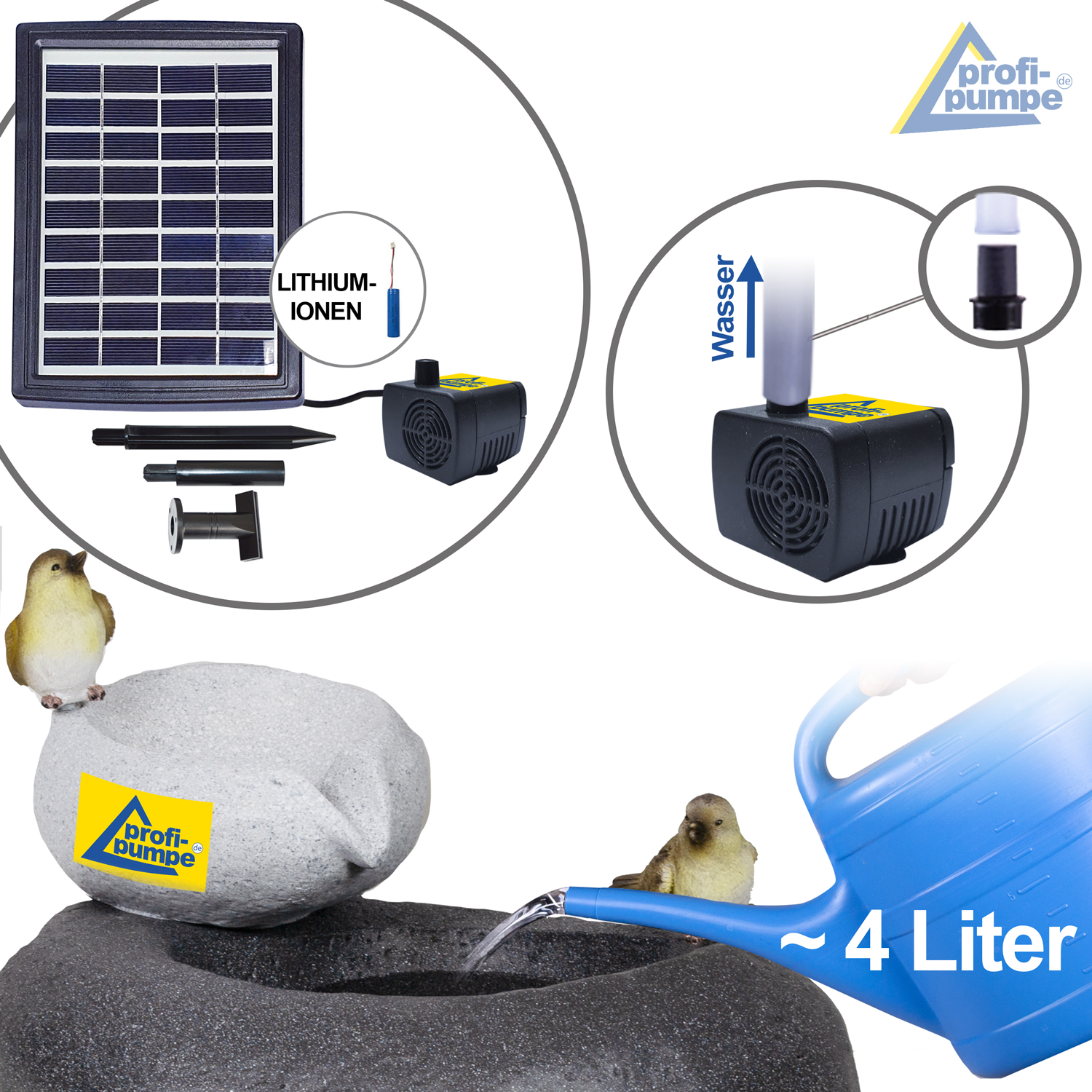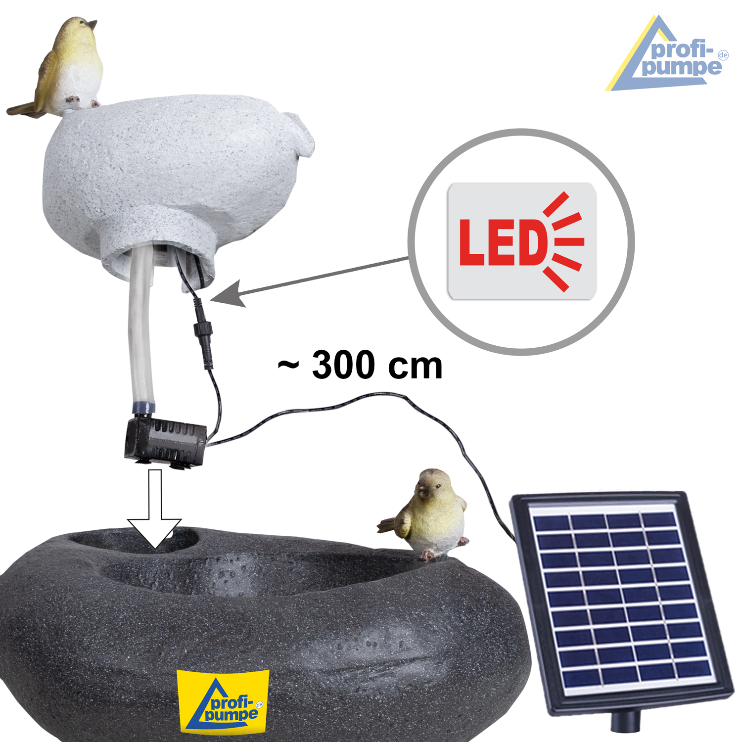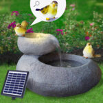 Mit den “FELS-SCHALEN” sorgen Sie für einen Blickfang in Ihrem Garten. Die kleinen Vögel auf den Fels-Schalen machen diesen Gartenbrunnen unverwechselbar. Das funkelnde Wasser im Sonnenlicht und das beruhigende Plätschern lässt eine Wohlfühlatmosphäre entstehen. Je stärker das Sonnenlicht ist, desto intensiver ist das Wasserspiel! An heißen Sommertagen sorgt der Solar-Brunnen für ein angenehmes Mikroklima.