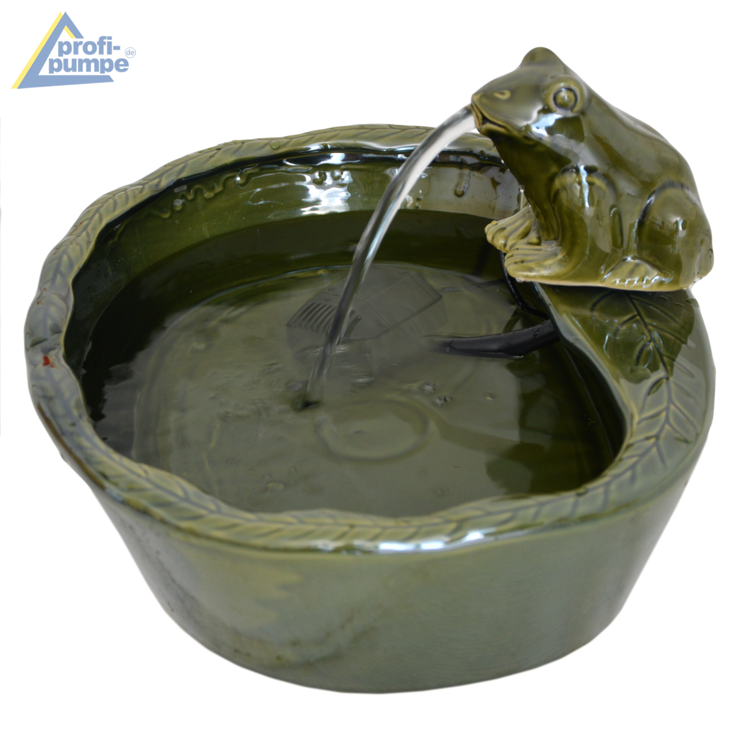 Der Solarbrunnen FROSCHPARADIES besticht durch die glänzende Keramik-Optik in natürlichem tannengrün und den zufrieden wirkenden Frosch am Beckenrand des Froschparadieses. Die solarbetriebene Pumpe fördert das Wasser aus dem Mund des Frosches in das ca. 35x27cm kleine Becken. Dieses Solar-Wasserspiel sieht nicht nur gut aus, es klingt auch schön, passt in den kleinsten Garten und sorgt für ein angenehmes Mikroklima an heißen Sommertagen.