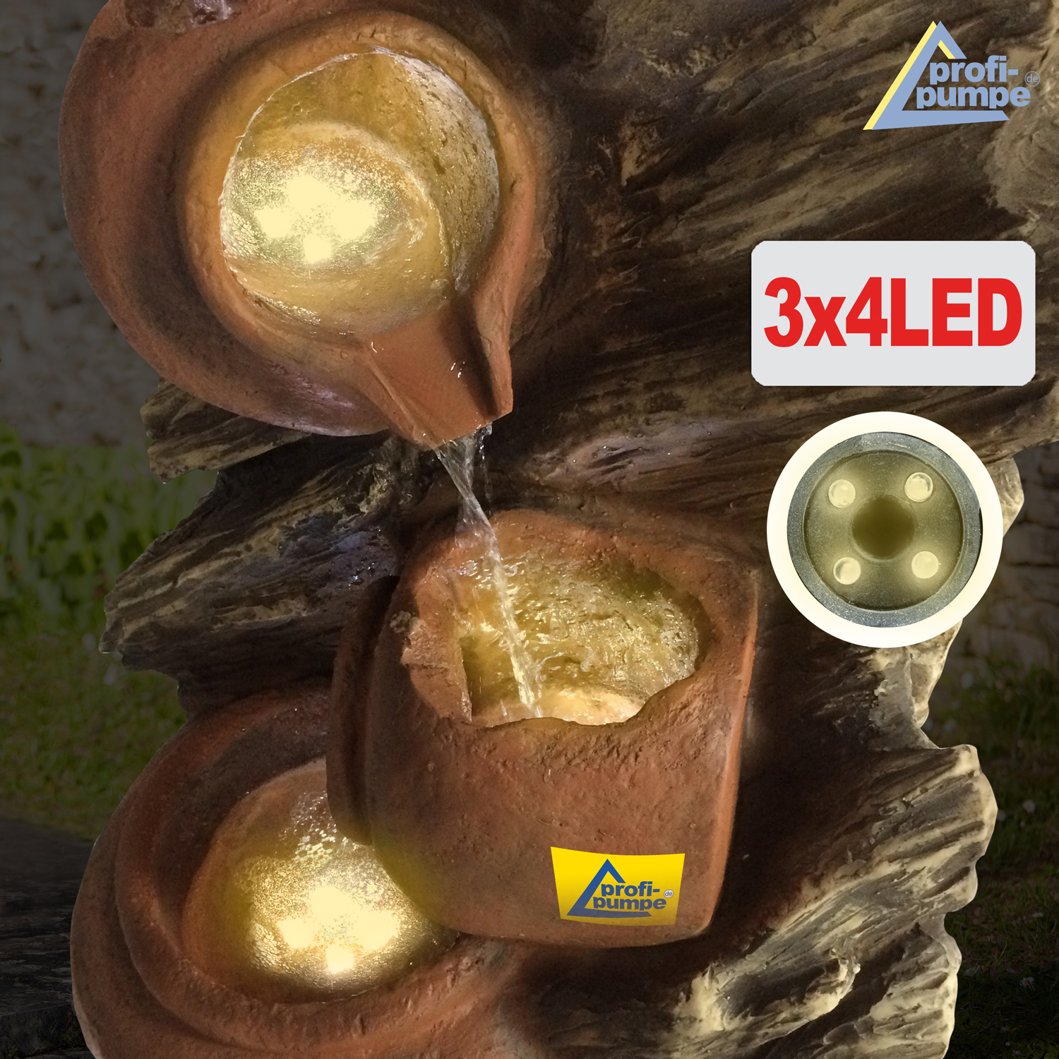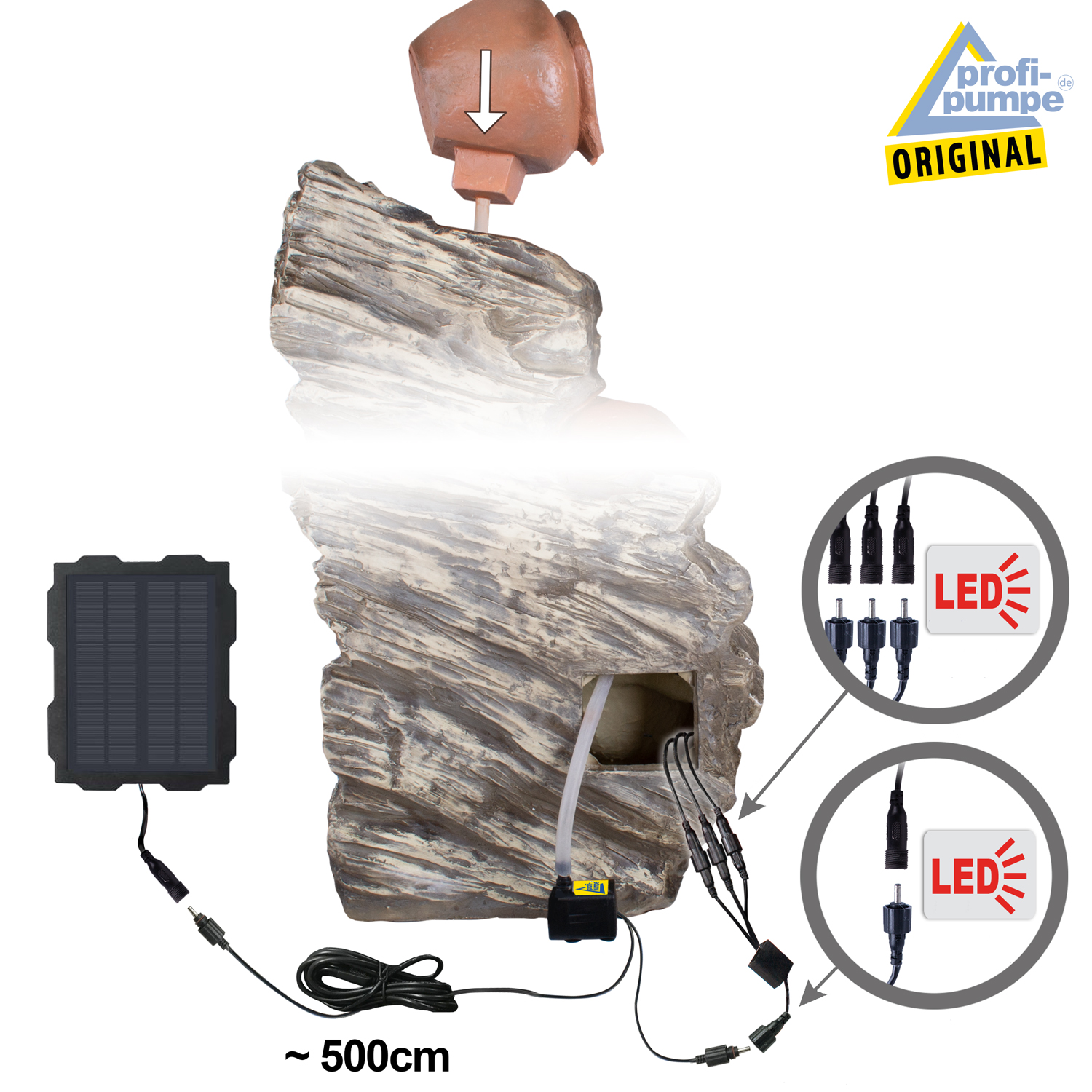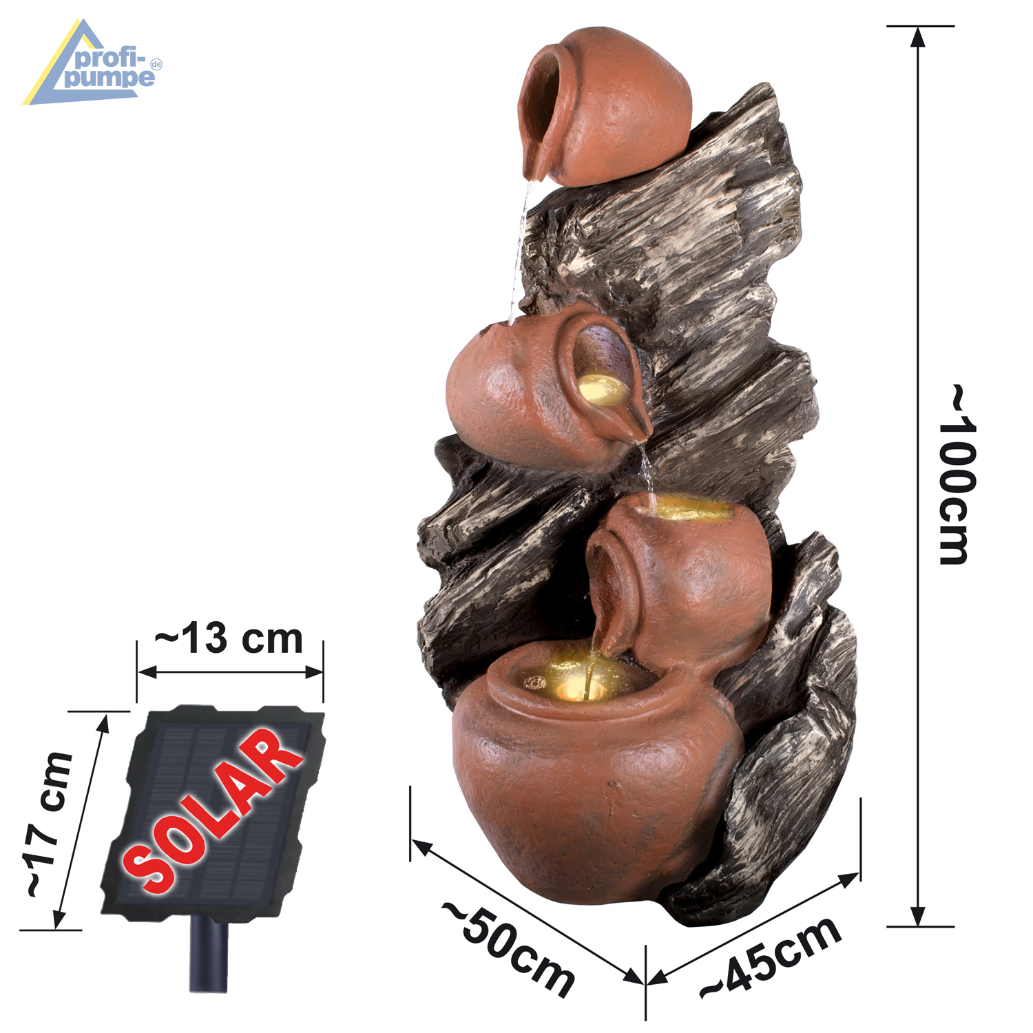 Solarbetriebener Garten-Brunnen mit Li-Ion Akku und LED-Lichter