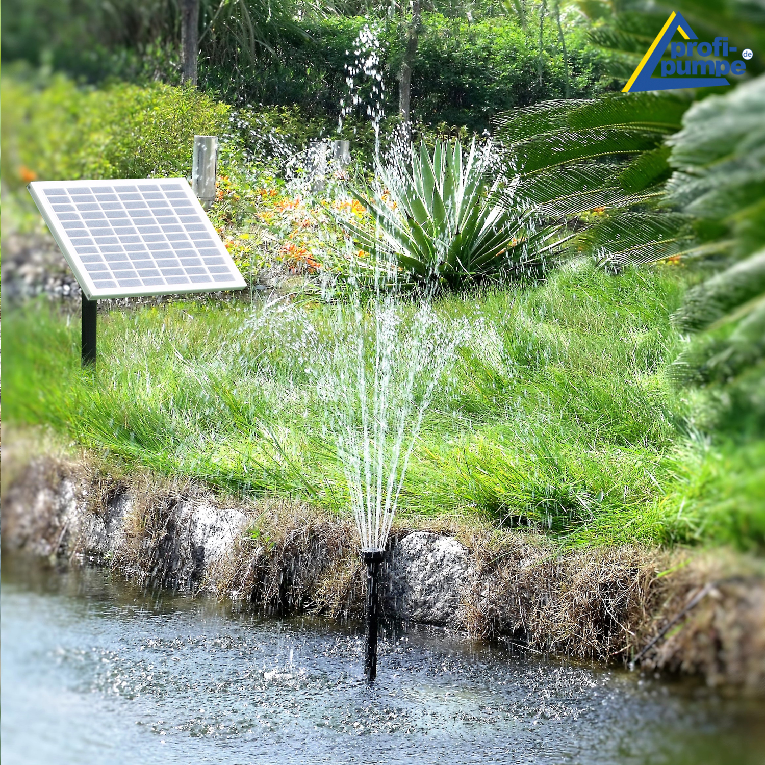 Dieses Solarteichpumpen-Set setzt die Kraft der Sonne in fließendes Wasser um. Hochwertige Komponenten bringen das Wasser in Bewegung, sobald das Sonnenlicht die Solarfläche erreicht. Je stärker die Sonne, umso intensiver wird das solarbetriebene Wasserspiel! Das beruhigende Rauschen des Wassers gibt jedem Teich die besondere Note und die im Sonnenlicht funkelnde Fontäne ist stets der perfekte Blickfang. Fließendes Wasser sorgt für noch mehr Wohlgefühl in Ihrem Garten und sorgt für ein angenehmes Mikroklima an heißen Sommertagen.
