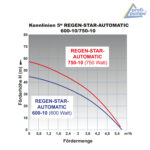 Die hochwertige, mehrstufige Tauchpumpe REGEN-STAR-AUTOMATIC 750-10 ist optimal geeignet für die Förderung von klarem Wasser aus Behältern oder zum Einsatz mit einer Druckerhöhungsanlage. Die Tauchpumpe REGEN-STAR-AUTOMATIC 750-10 fördert das Wasser mit einem Druck von 5,7bar (üblicher Leitungsdruck) an die Abnahmestellen im Haus oder Garten. Sie kann sowohl waagrecht als auch senkrecht betrieben werden. Die Tauchpumpe kann an eine schwimmende Entnahme angeschlossen werden, sodass Wasser von der Oberfläche entnommen wird. Dadurch wird einer Ansaugung von Bodensediment vorgebeugt, was ein großer Vorteil ist. Die Tauchpumpe zeichnet sich durch ausgesprochene Laufruhe und geräuscharmen Betrieb aus.