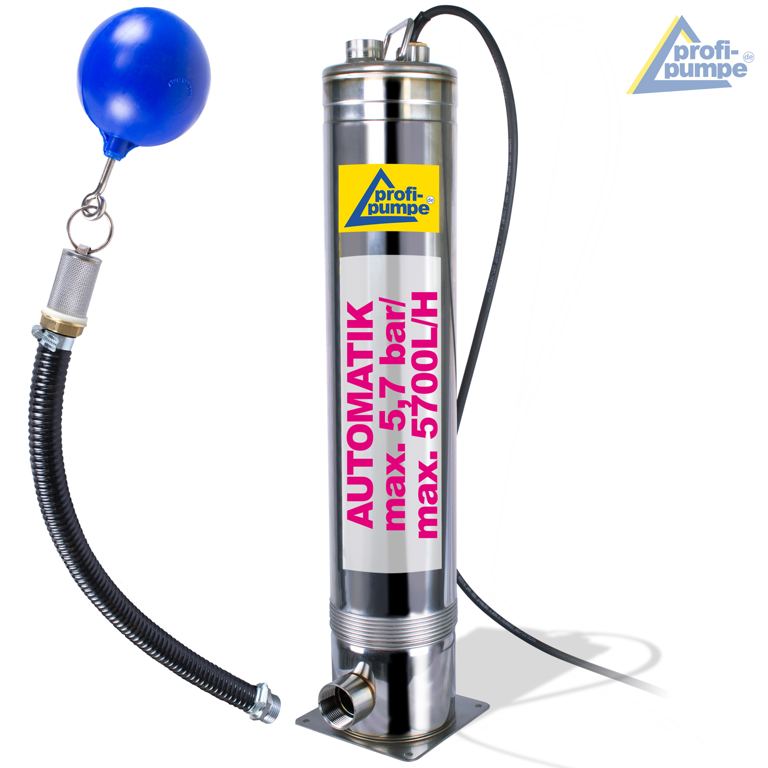 • Solide Qualitäts-Tauchdruckpumpe mit max 5,7bar und max 5700L/h
